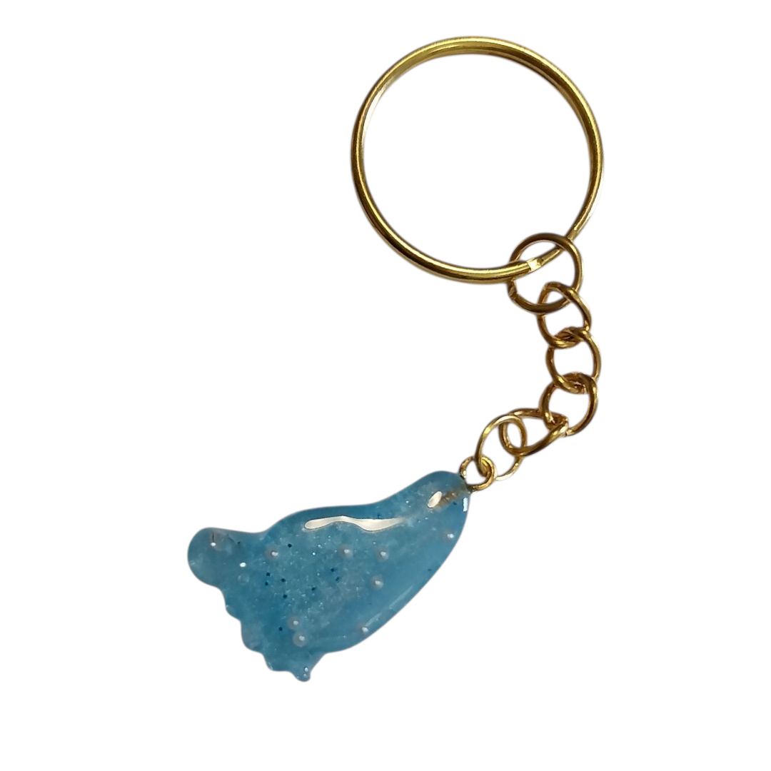 Baby nogica, obesek za ključe zlate barve, nogica modra cca 2,8cm.