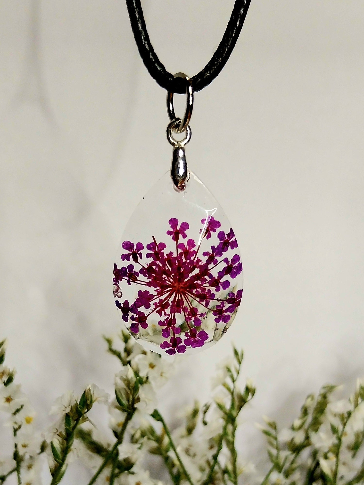Epoksi obesek s suhimi rožami , cvet divjega korenja. 2,5cm dolžina, širina 2cm.