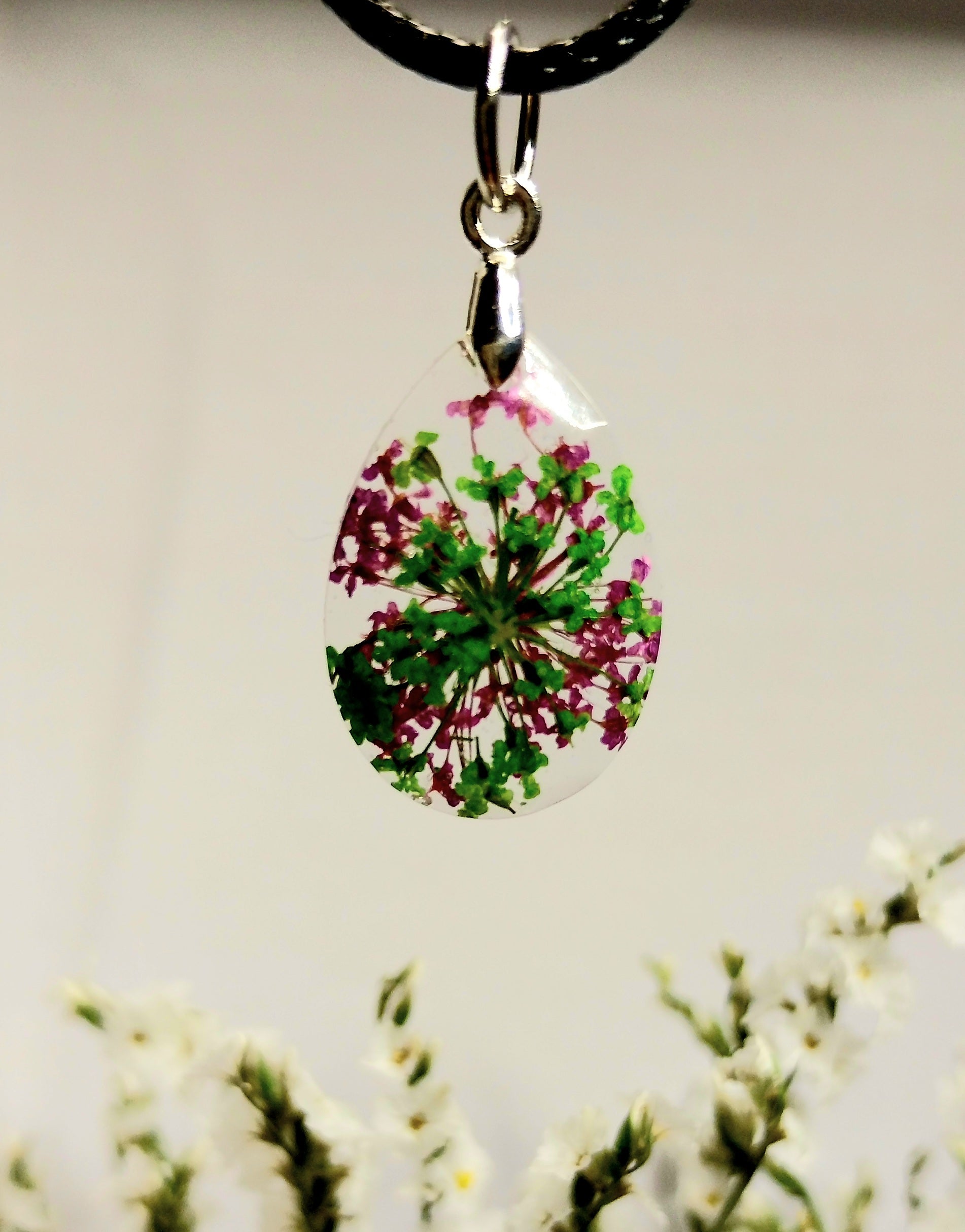Epoksi obesek s suhimi rožami , cvet divjega korenja 2 cm.