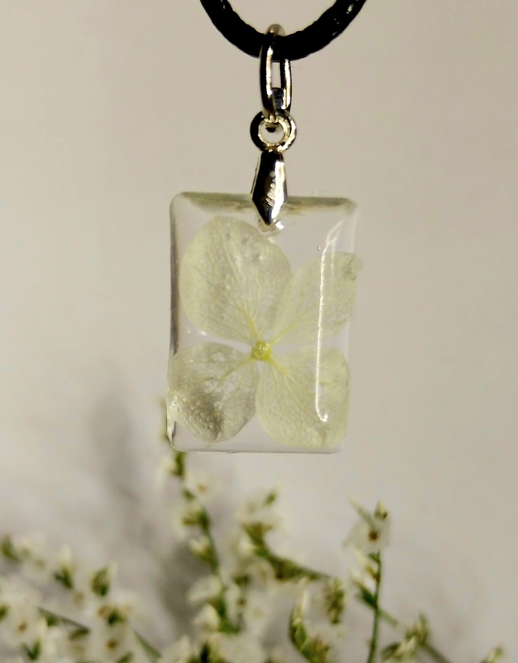 Epoksi obesek s suhimi rožami , cvet Hortenzije 1,8 cm × 1,5 cm.