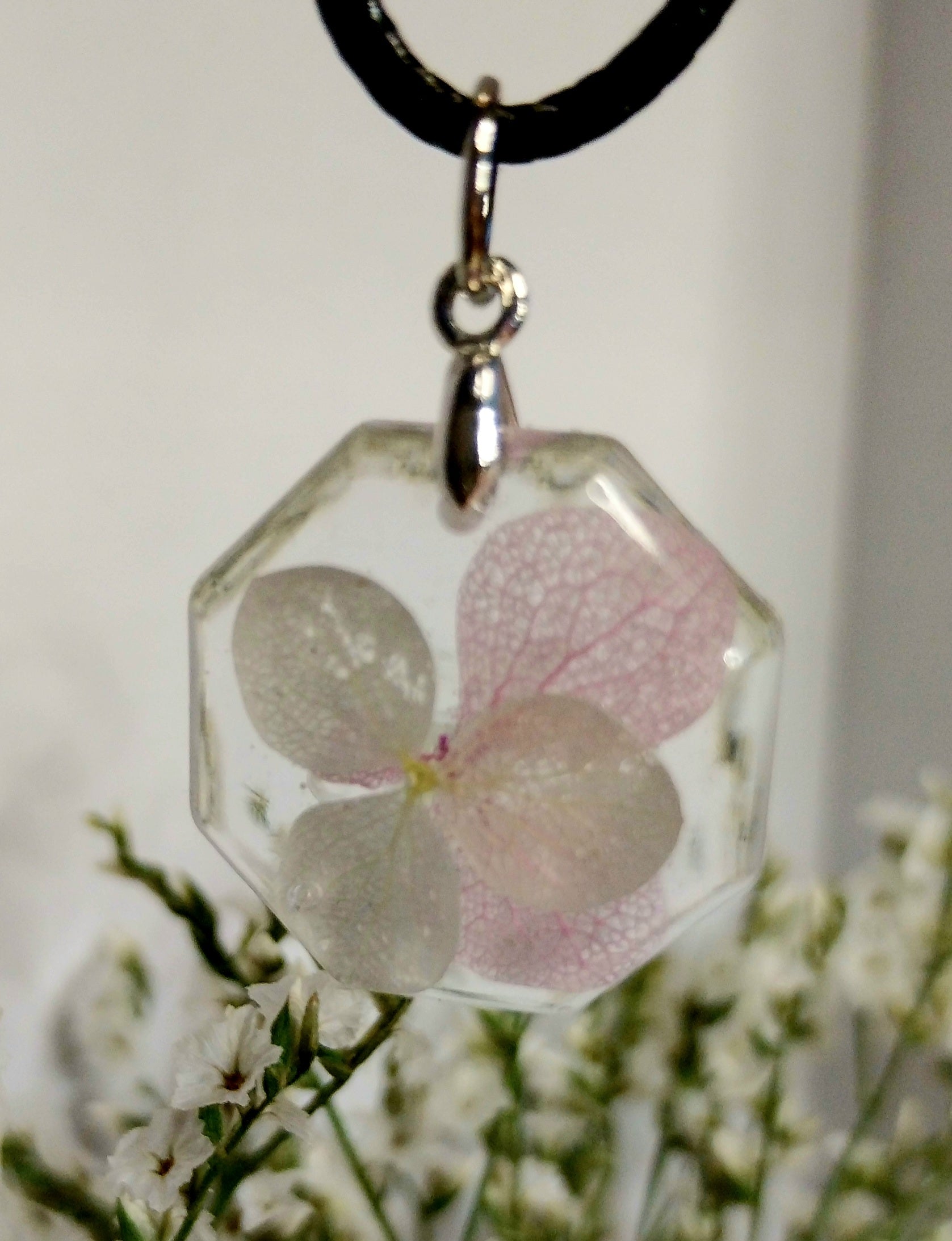 Epoksi obesek s suhimi rožami , cvet Hortenzije. 2 cm.