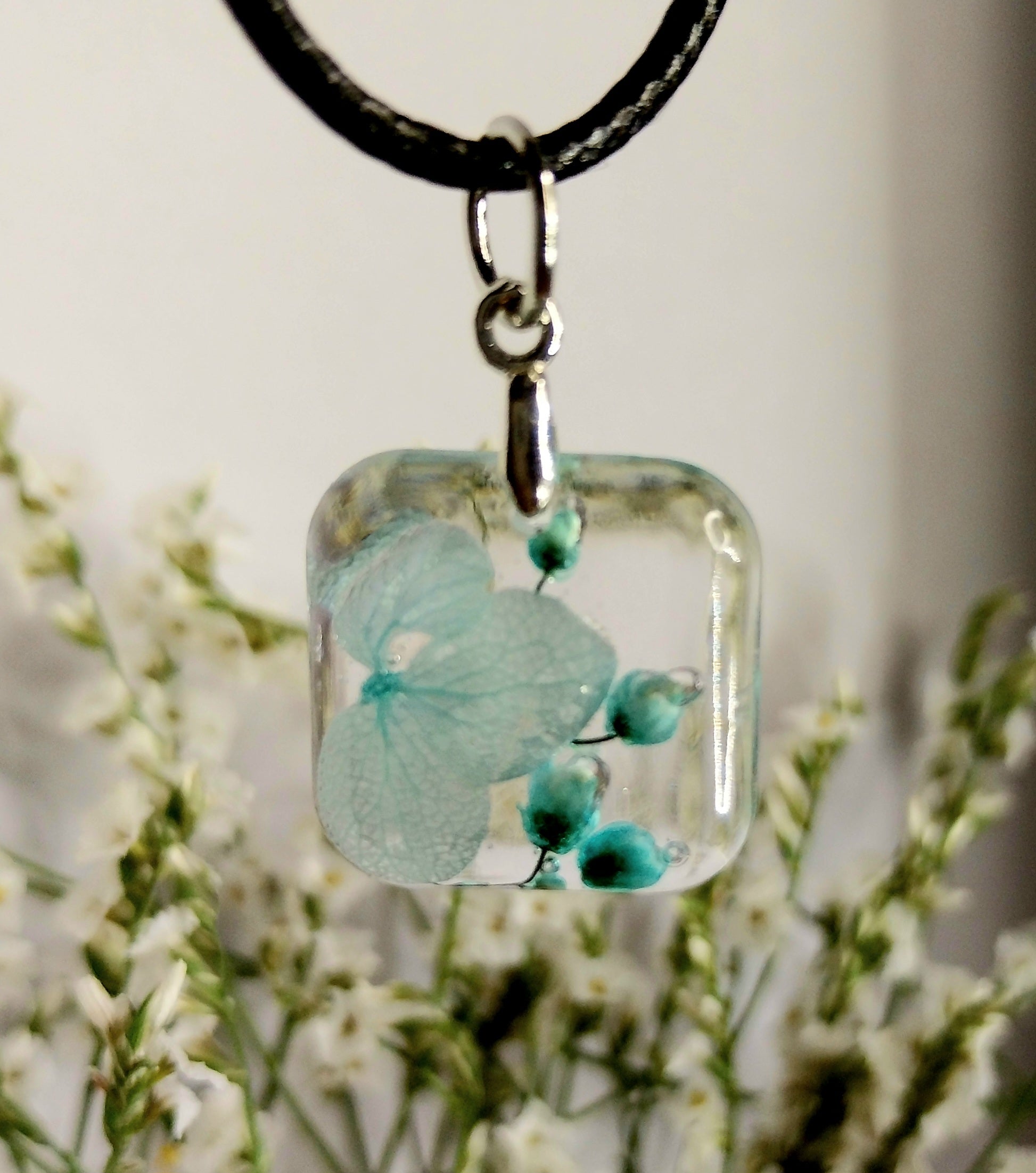 Epoksi obesek s suhimi rožami , cvet Hortenzije 1,7cm.
