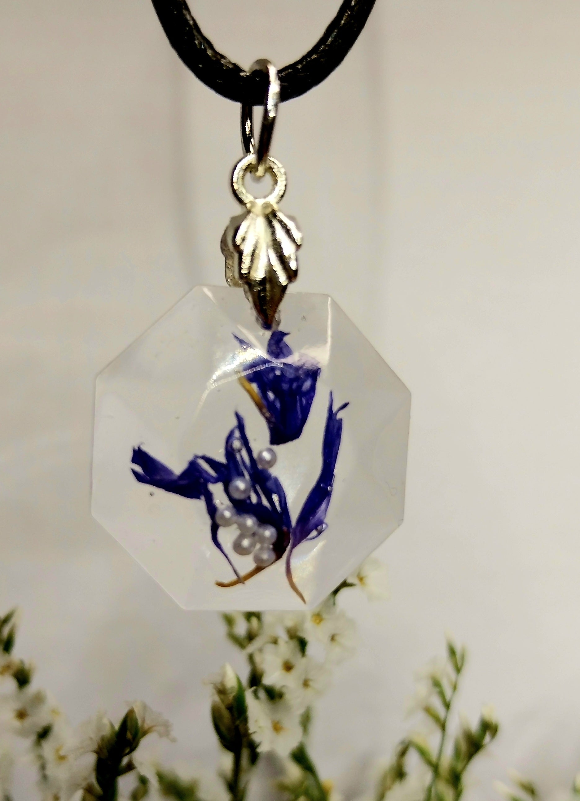 Epoksi obesek s suhimi rožami , cvet Modre plavice. 2 cm.