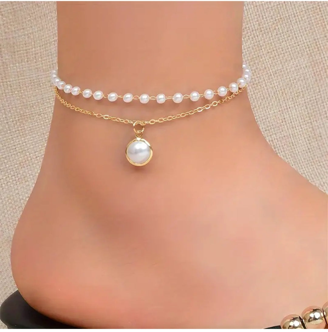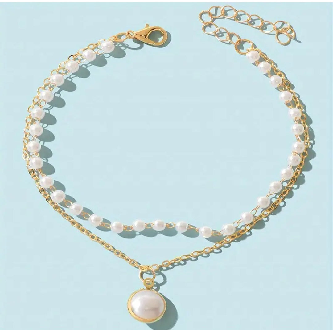 Nagležnica, iz umetnih biserov in zlitine, nastavljive dolžine 22cm+5cm.