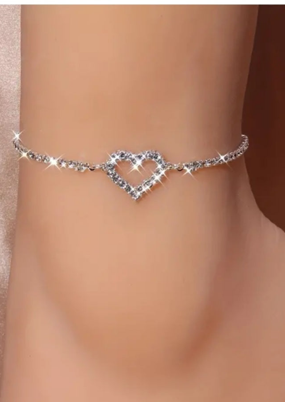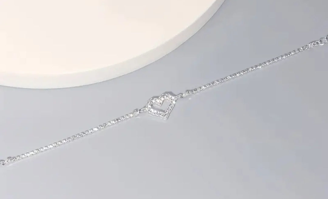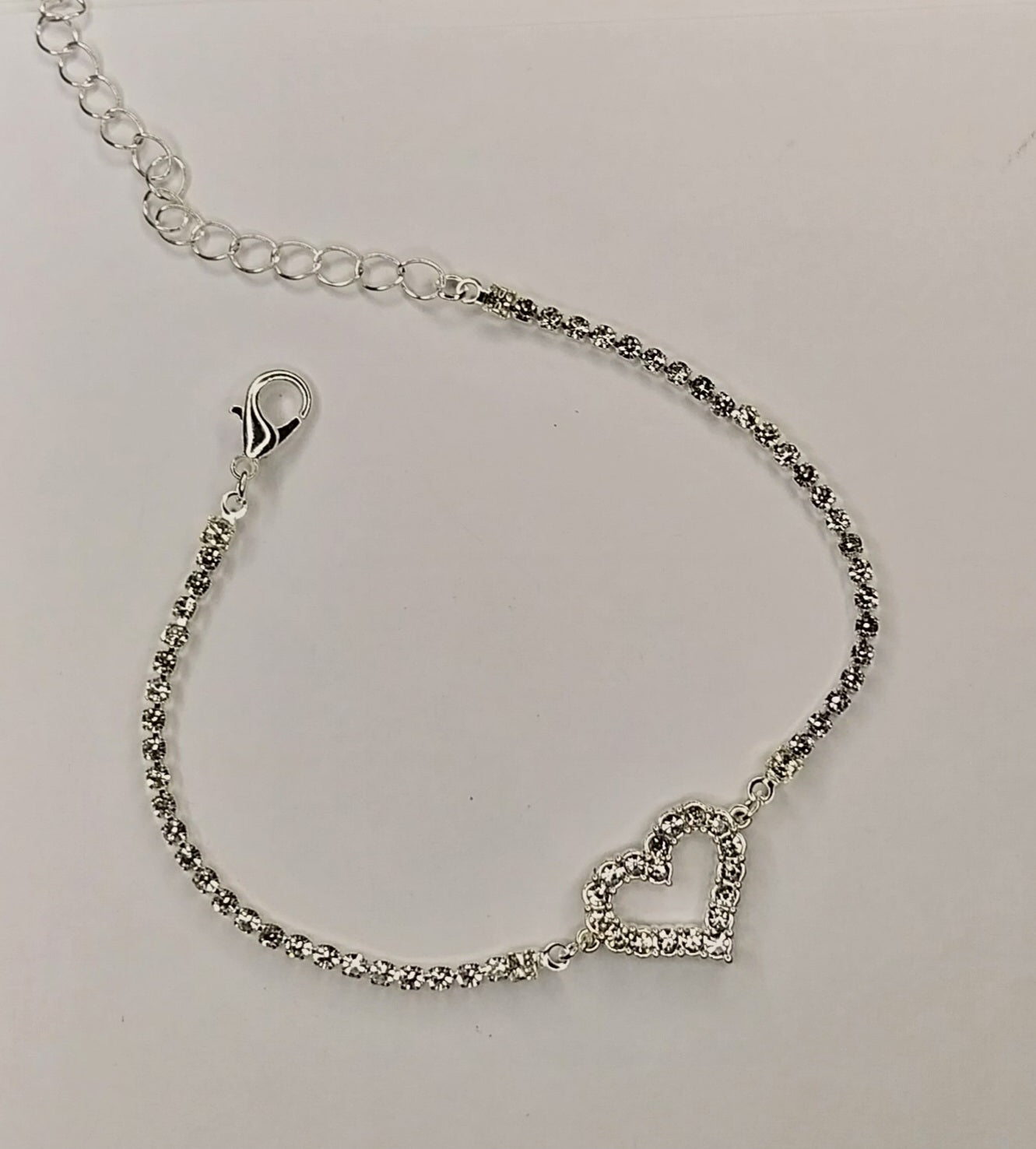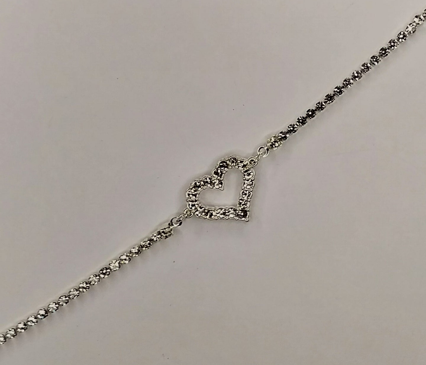 Posrebrena bakrena nagležnica, s kamenčki. Dolžina nastavljiva 17cm+7cm. Srebrna barva.