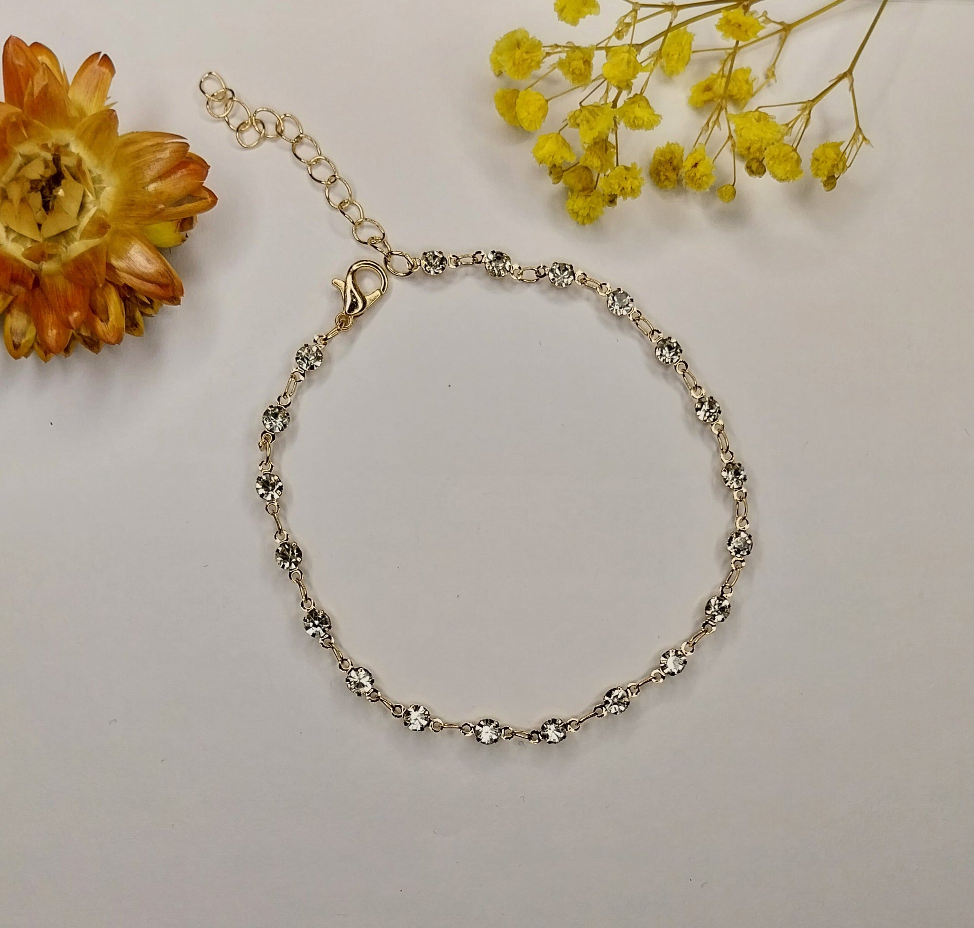 Prekrasna elegantna nagležnica, dolžina nastavljiva 21cm +5cm. Zlate barve, s kristalčki.