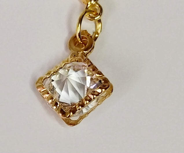 Obesek zlate barve, velikost 1cm, s kristalčkom.