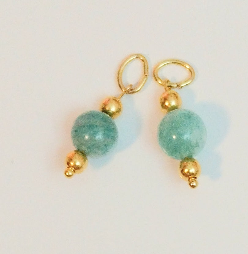 Obesek Amazonit pomirja um in dušo. Blagodejno vpliva proti stresu, krepi kreativnost, ustvarjalnost in samopodobo. Mnoge starodavne kulture, ga povezujejo z boginjami in ženskimi bojevnicami. 2 kosa v kompletu, velikost 1,7cm.