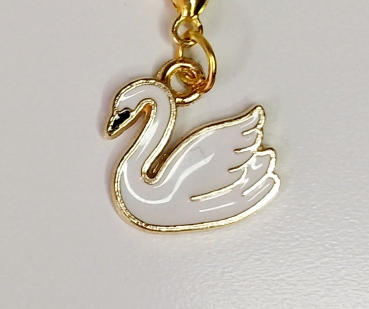 Labod, velikost obeska 1,5×1,5cm.Zlate in bele barve.