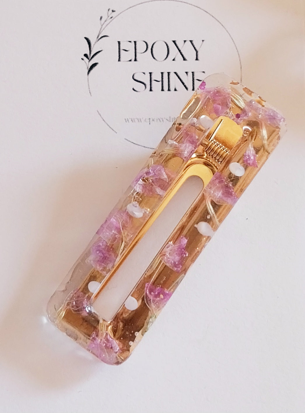 Dodaj kanček romantike svoji pričeski s čudovito ročno izdelano epoksi špangico. Vsaka sponka je unikat – ujeta kapljica elegance, ki nežno objame tvoje lase in jih popestri s subtilnim sijajem. Z dolžino cca 7 cm je popolna za vsakdanji videz ali posebne priložnosti, ko želiš zasijati.