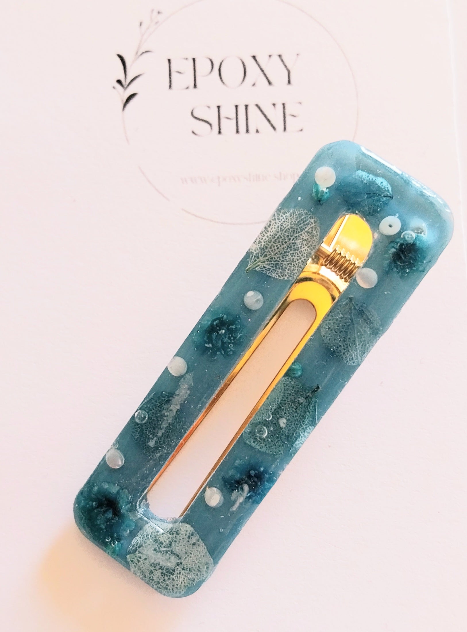 Dodaj kanček romantike svoji pričeski s čudovito ročno izdelano epoksi špangico. Vsaka sponka je unikat – ujeta kapljica elegance, ki nežno objame tvoje lase in jih popestri s subtilnim sijajem. Z dolžino cca 7 cm je popolna za vsakdanji videz ali posebne priložnosti, ko želiš zasijati.