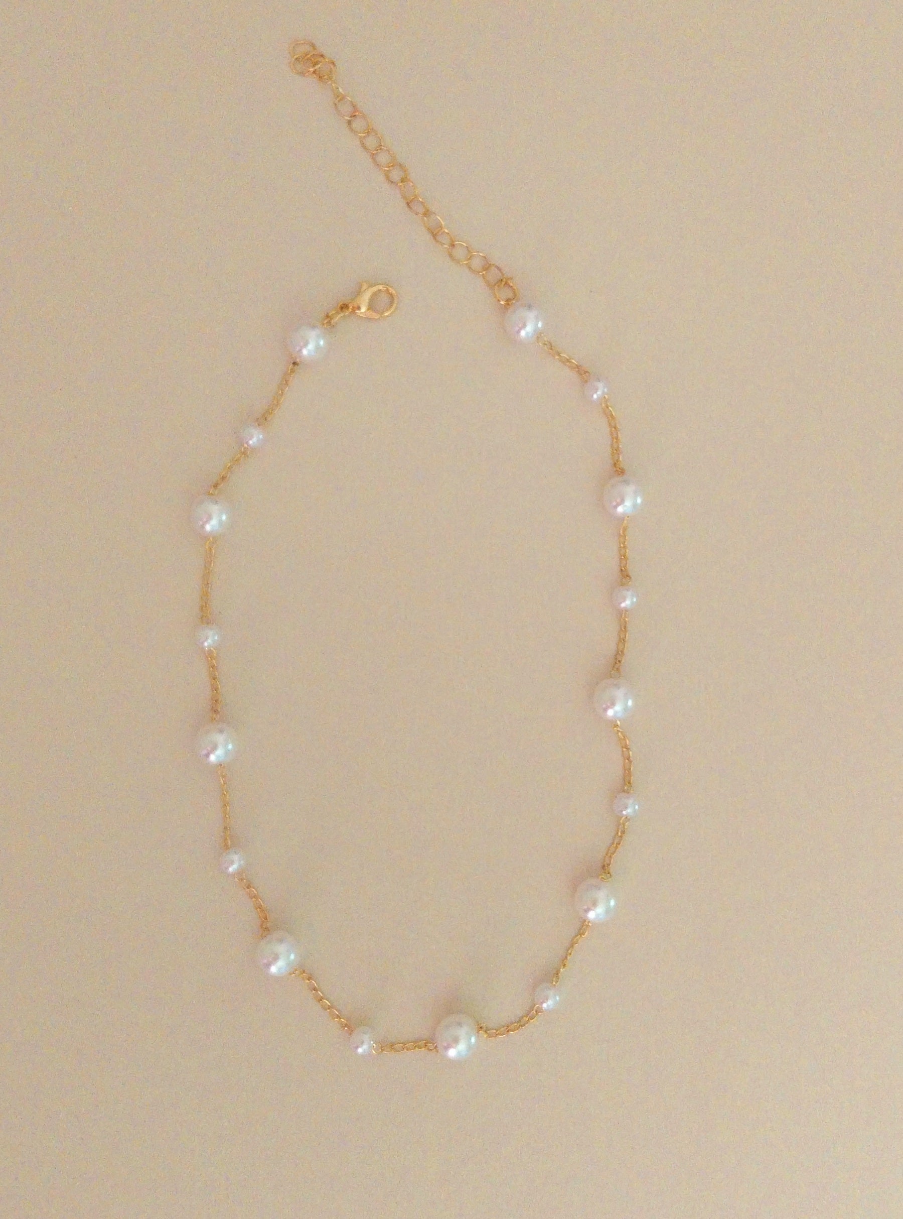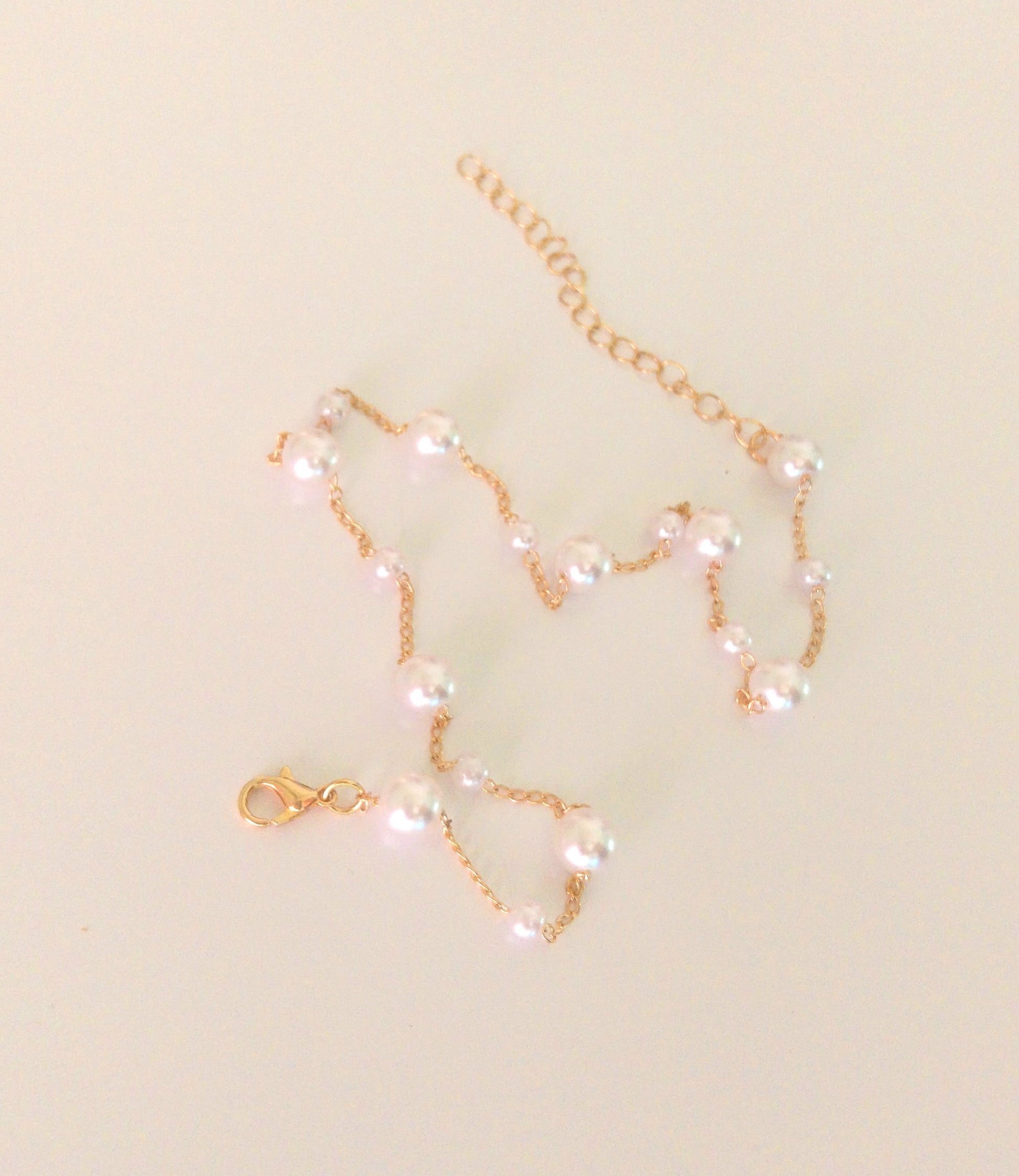 Material zlitina, nastavljiva dolžina 40cm+7cm. Perle 0,4cm in 0,8cm.