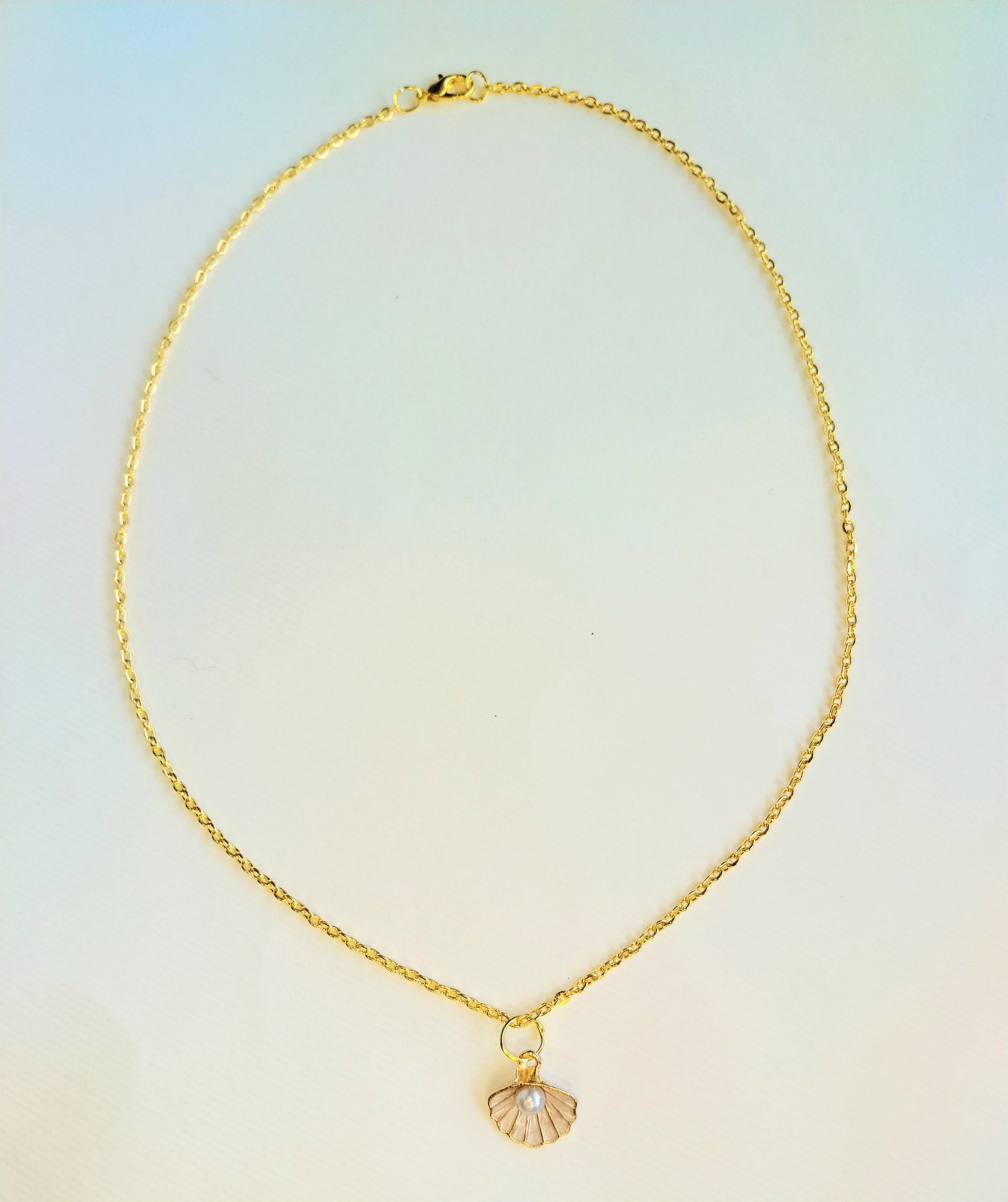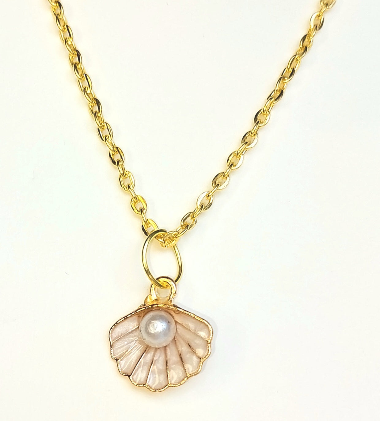 Verižica, material zlitina, dolžina 50cm. Obesek 2cm, školjka z biserčkom.